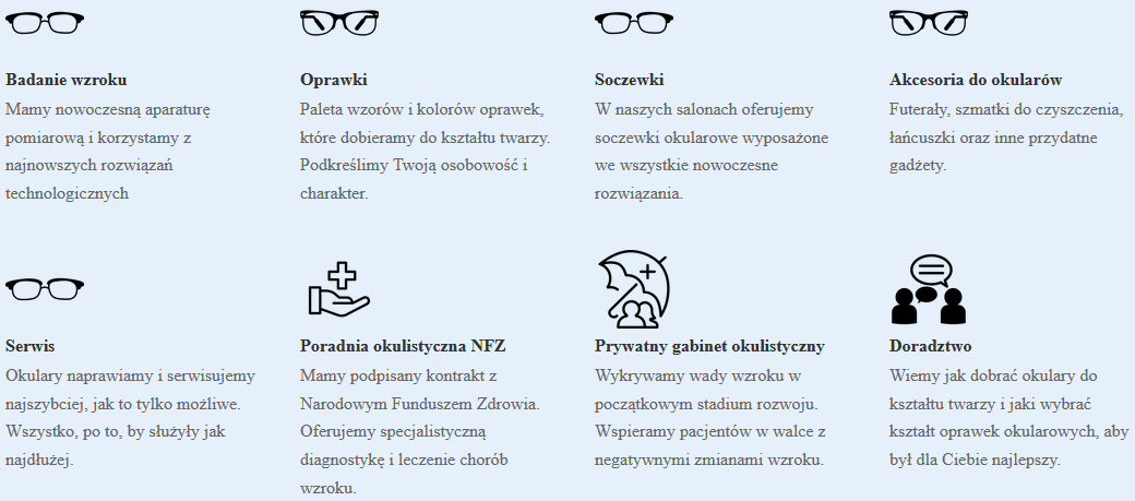 OPTYKA BAGIŃSCY Ubytki pola widzenia, pogorszenie ostrości wzroku, podrażnienie i ból oczu, suchość oczu, zmęczenie i pieczenie oczu, przekrwienie spojówek czy uczucie „piasku” pod powiekami to objawy, które wymagają kontaktu …